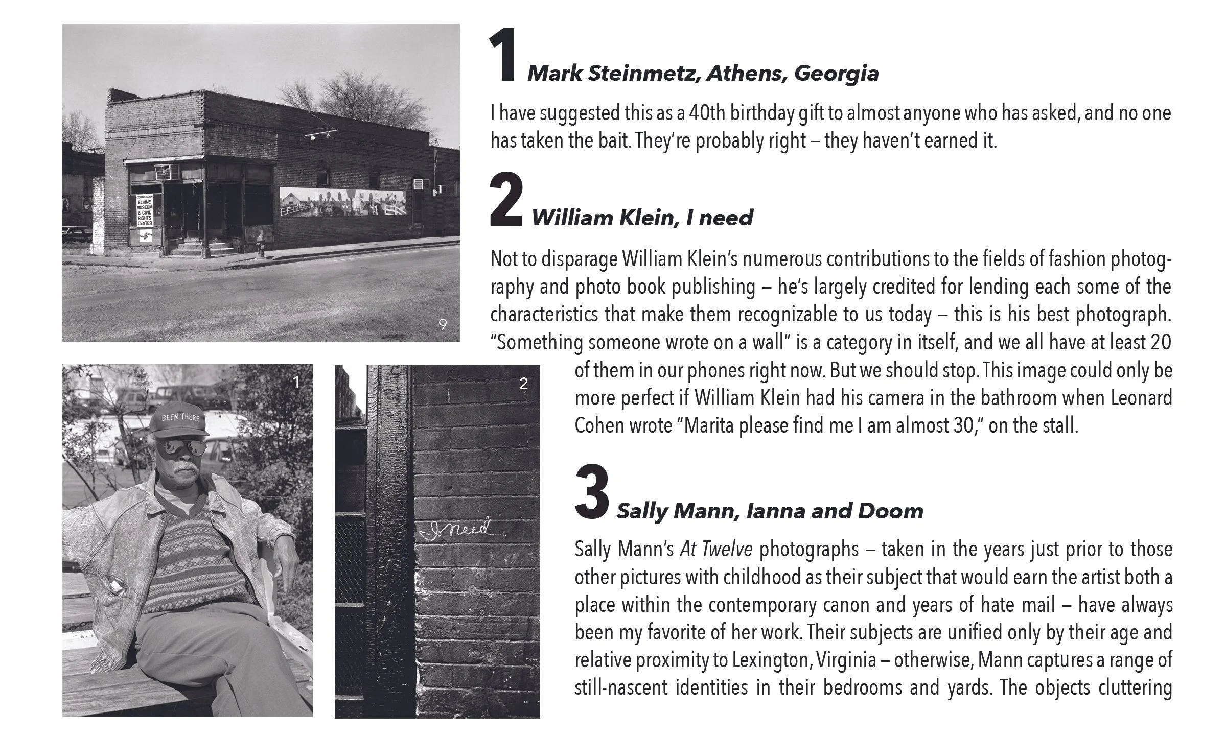 All that being said, I fucking love a photograph with words in it. These ten photographs bring together artists who’ve shaped the medium in deeply personal and varied ways: William Klein, whose brash vision reshaped how we read the street; Sally Mann, whose portraits of adolescence remain some of my most visceral favorites; Steve Schapiro, who photographed history with wide empathy; Paul McDonough, one of New York’s sharpest observers; Elliott Erwitt, the unrivaled master of humor and humanity; Vivian Maier, whose archive keeps rewriting the canon; Justine Kurland, whose irreverence feels urgent now; Harlan Bozeman, demanding that erased histories be named; Peter Kayafas, who finds lyricism in the overlooked; and Mark Steinmetz, whose work — time and again — marks the gentle passing of time for me. Together, they remind me why text in photographs matters — not to clarify the story, but to complicate it.