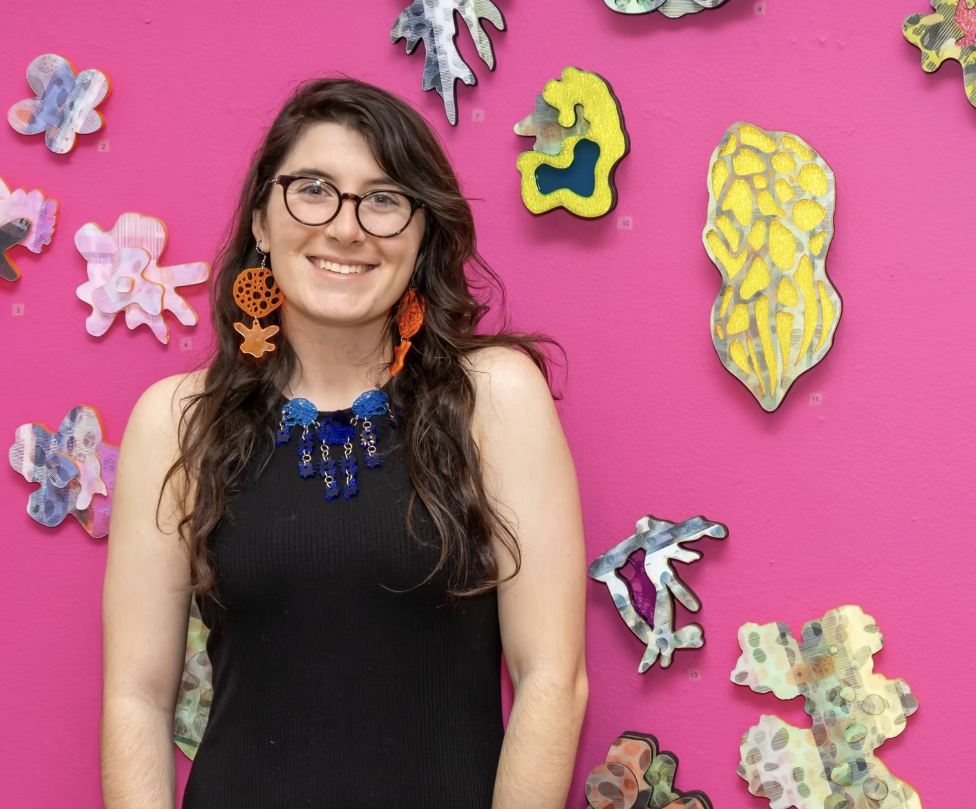 During her residency, Keats will build off her current research to create an immersive installation for viewers that fosters dialogue about humanity’s interactions with technology and the natural world. Through a combination of digital printing, collage, laser cutting, and painting, Keats constructs sculptural paintings that mimic the forms of coral and fungi to build immersive environments for viewers which system from her response to the natural world, and aim to create a sense of awe. These pieces will switch between small paintings and lenticular prints to larger spatial interventions that go from the wall to the floor, allowing the work to enmesh viewers in a space completely. By integrating the methods of world-building used in speculative fiction, Keats aims to construct immersive environments that allow viewers to explore the boundaries between artificial and organic systems.