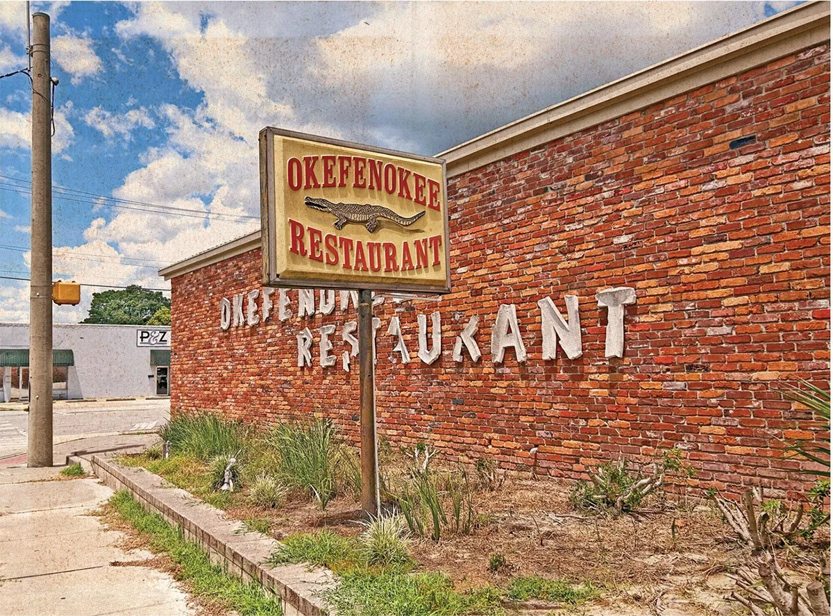 By the time we reach Folkston, proud hometown of NFL Pro Bowl cornerback Champ Bailey, (swamp) things are looking up. Literally. “Gateway to the Okefenokee” reads the legend painted on the town’s imposing water tower, an alligator mural wrapping around its elevated tank like a rugged tattoo on a bulging white belly.