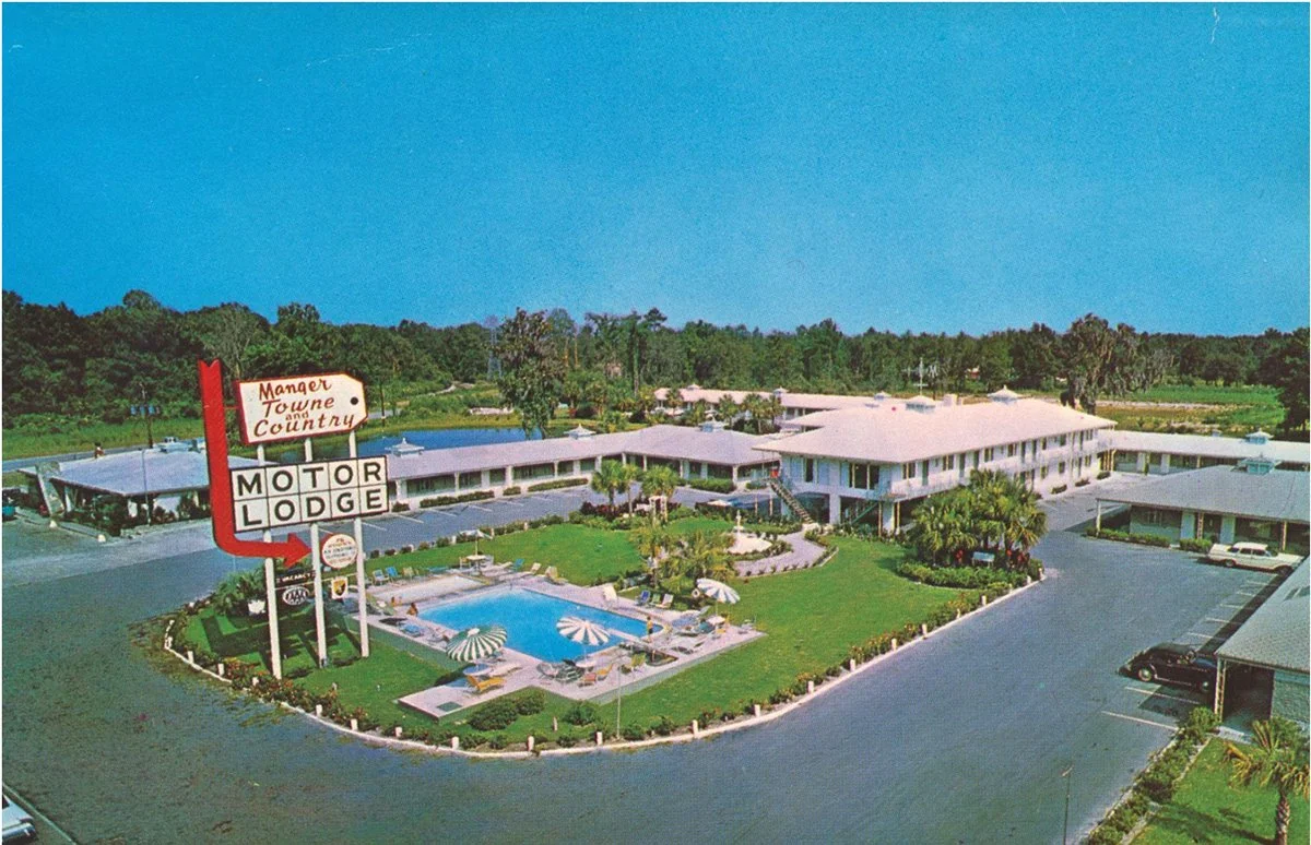 Within minutes we merge onto Highway 17 as it ramps down from the elevated parkway. We pass a motel that was once called the Manger Towne and Country Motor Lodge. Back when this busy stretch of highway was a two-lane blacktop, the Motor Lodge featured a swimming pool out front, and served as an overnight stop for a youthful, pre-imperial Rolling Stones on their 1965 tour of the East Coast. A relic of the motopia of yesteryear.