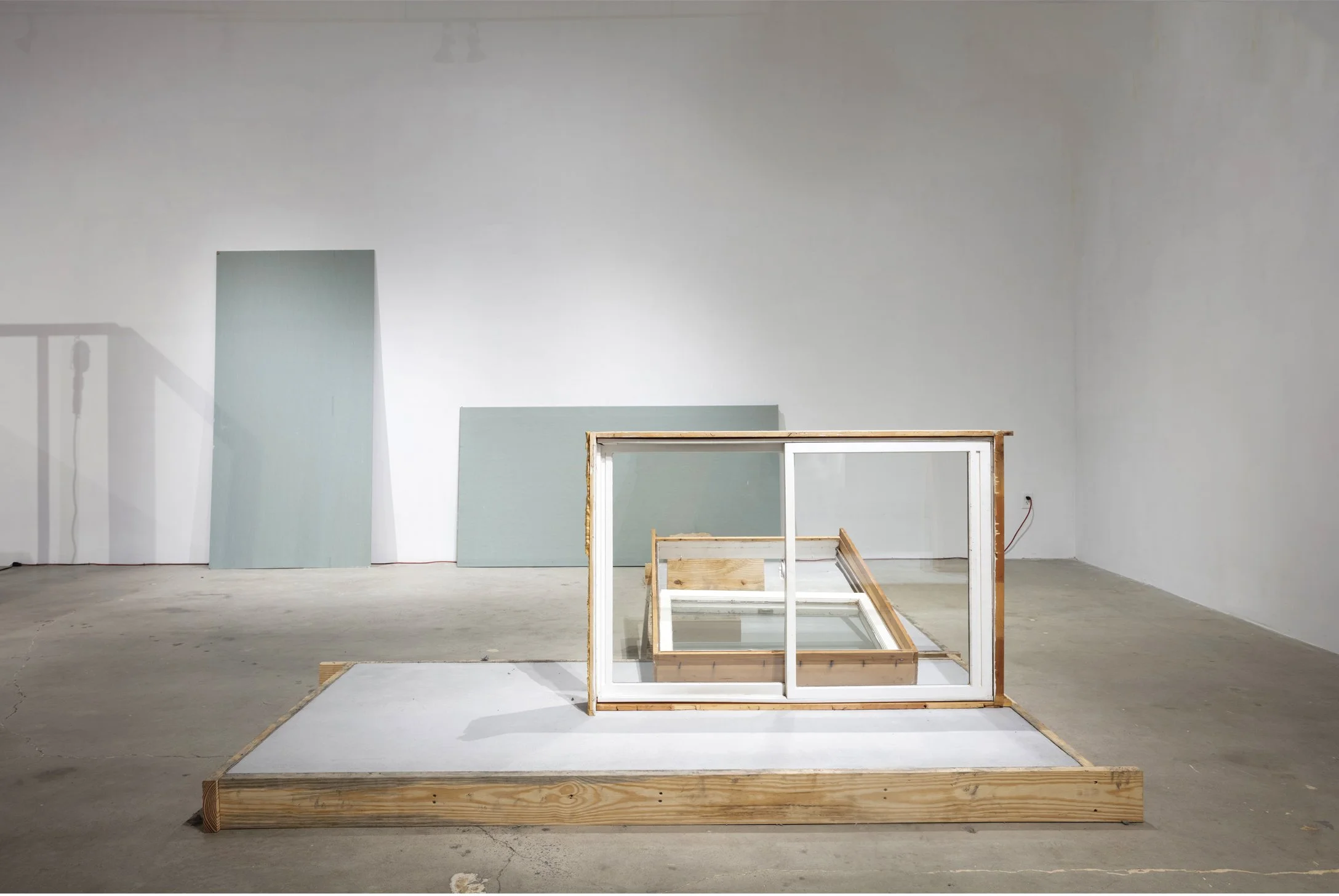 Krista Clark, Stopped, Westviews Through Ontario, 2017. Tarp, wood, insulation, tape, 144 x 180 inches.