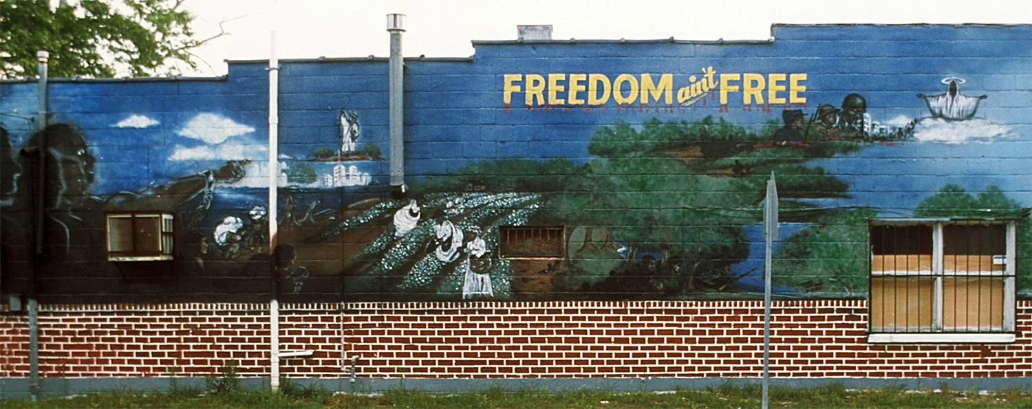 TK: One of our favorite of your artworks was a mural named Freedom Ain’t Free. It covered a whole wall on a building on Pennsylvania Avenue. Who commissioned that?
